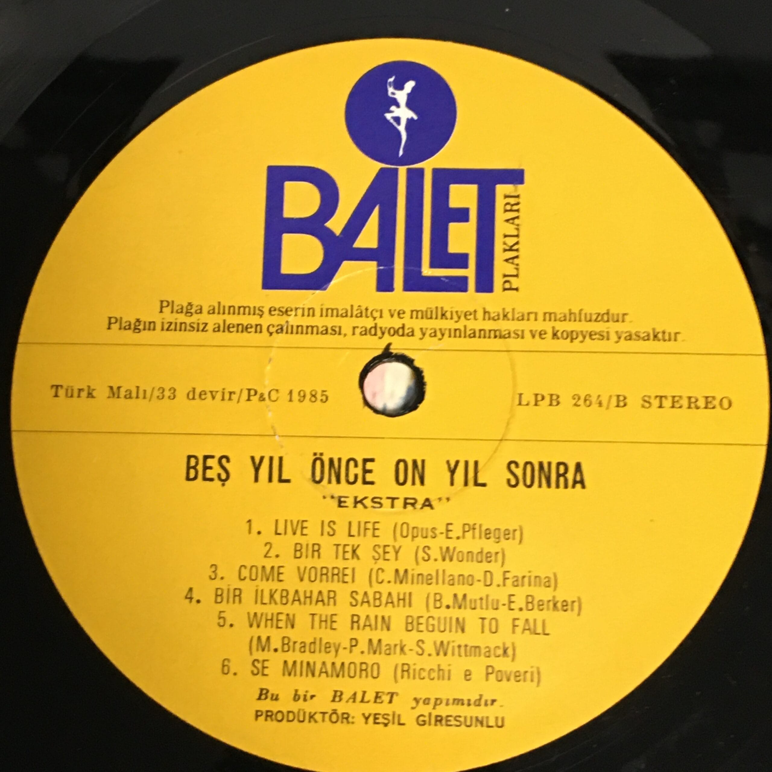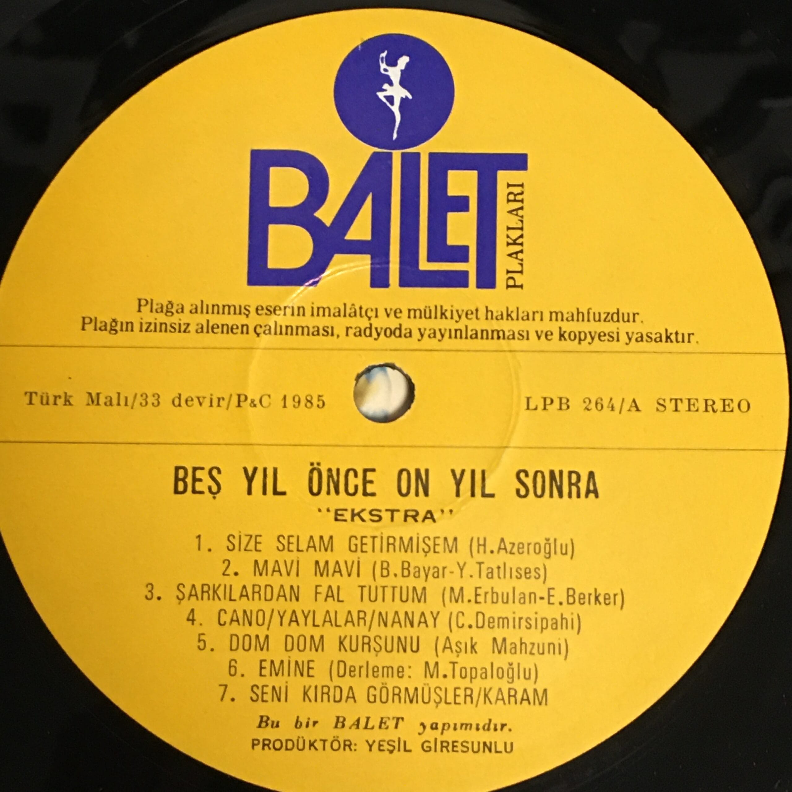 BEŞ YIL ÖNCE ON YIL SONRA-EKSTRA-DORUK ONATKUT ORK.-LONGPLAY BALET PLAK 1985
