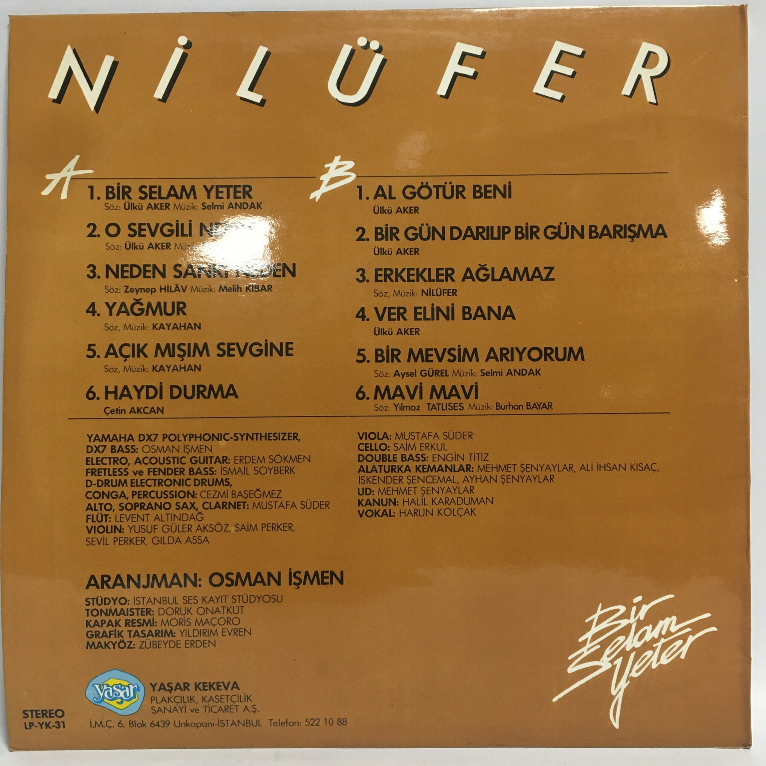 NİLÜFER–BİR SELAM YETER– YAŞAR PLAK–1987—LONGPLAY
