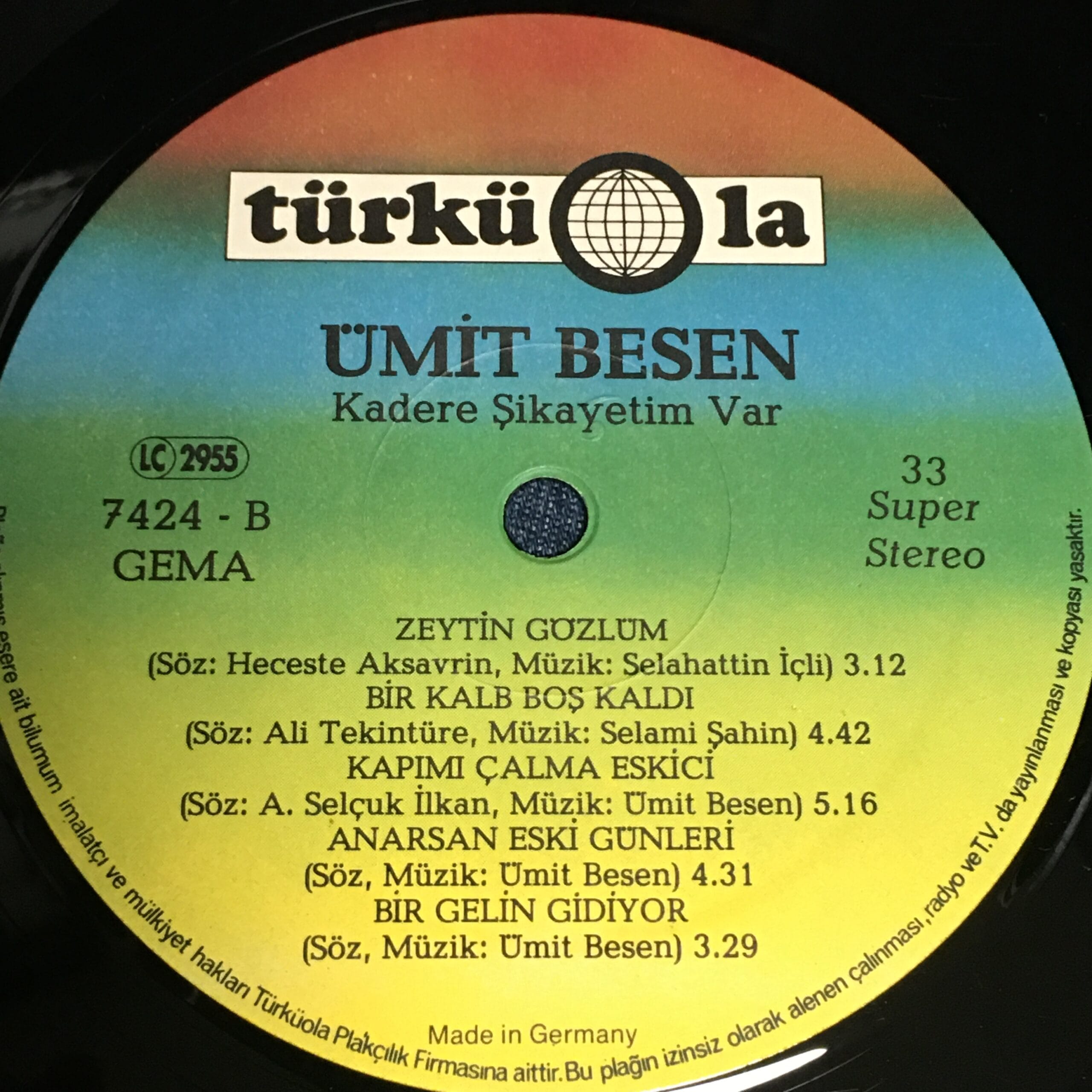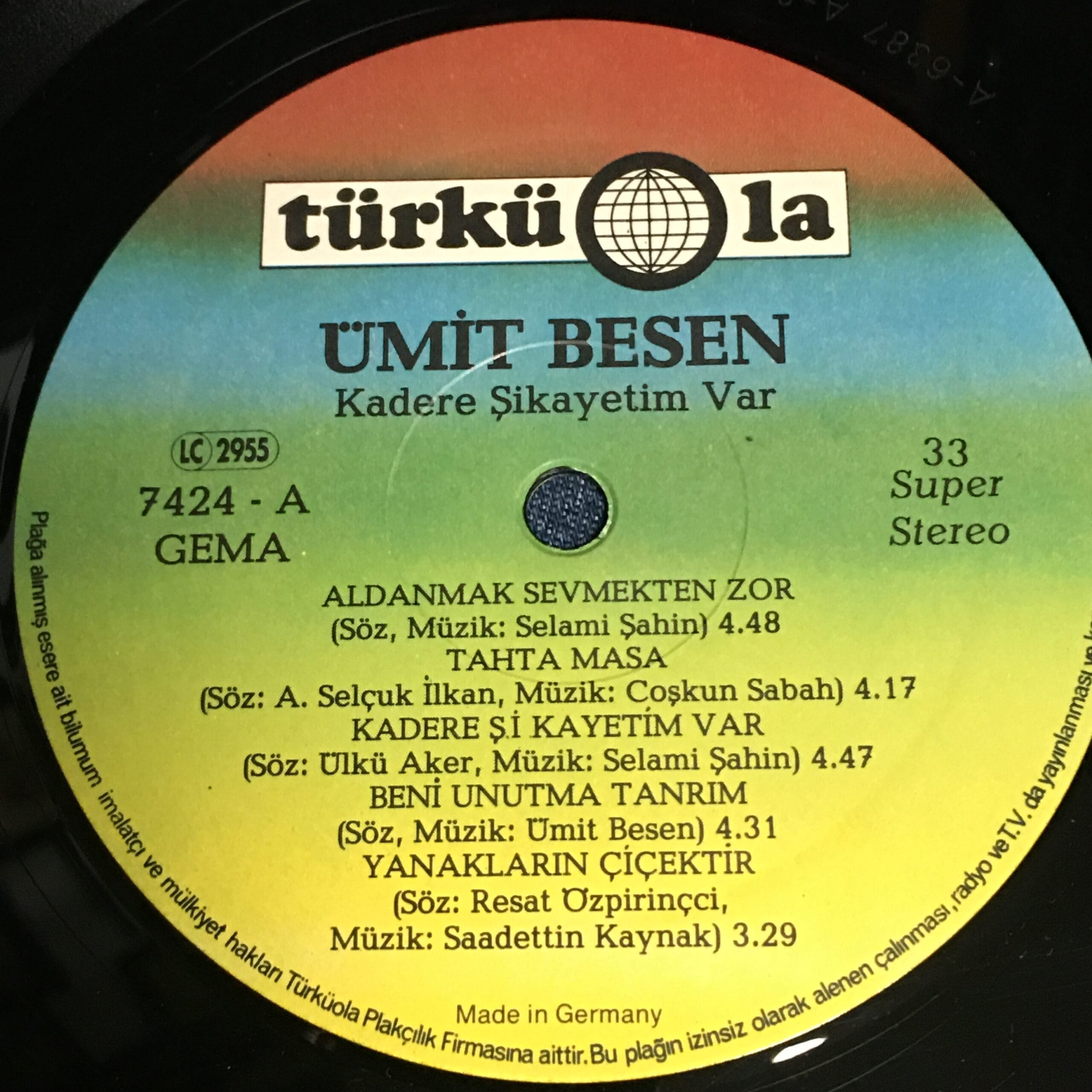 ÜMİT BESEN KADERE ŞİKAYETİM VAR TÜRKÜOLA ALMAN BASKI LP ÇOK TEMİZ